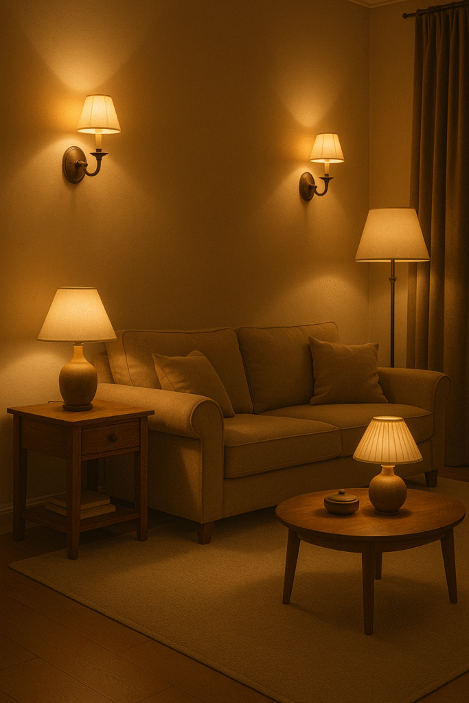 Warm lighting (2700K–3000K) always looks more welcoming than harsh white light.