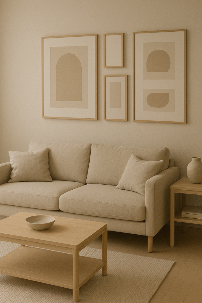 Avoid over-styled gallery walls that feel trendy and temporary. Instead, choose 2–4 large pieces for a cleaner, high-end effect.